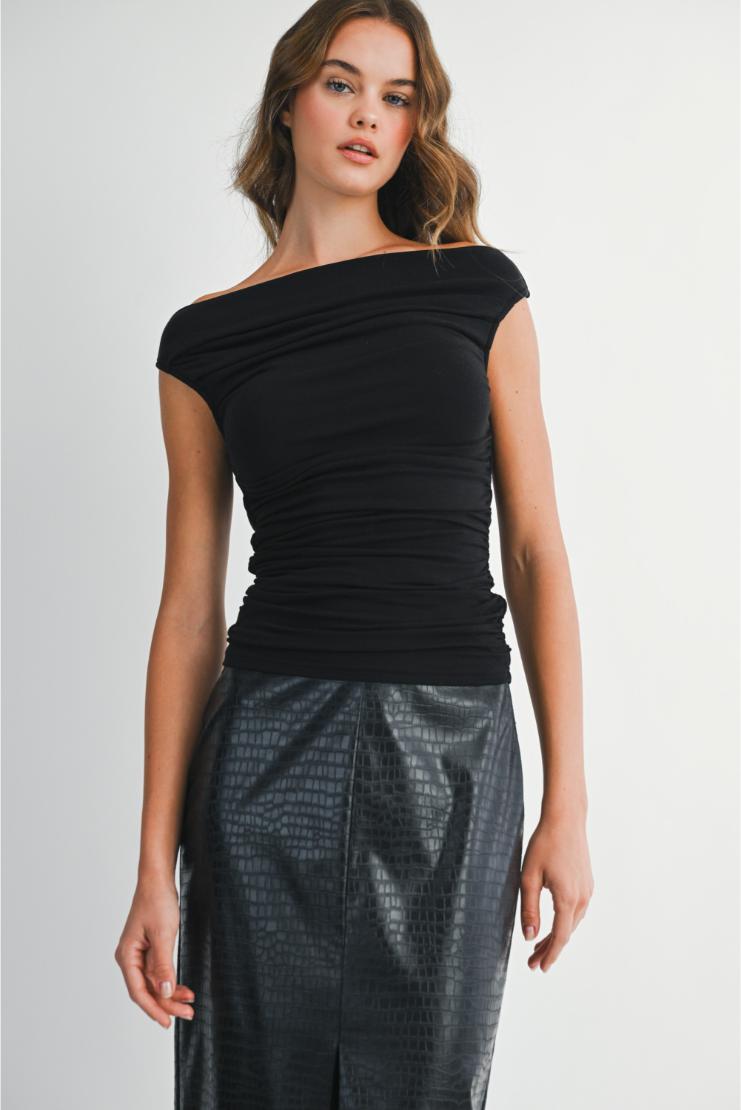 Slip into effortless elegance with this Amiri off-the-shoulder knit top. The ruched detailing adds dimension and flatters your silhouette, while the soft knit fabric keeps you cozy in style. Perfect for date night or casual outings, this brown beauty transitions seamlessly from day to evening. Pair it with your favorite jeans or dress it up with a skirt for instant sophistication with a flirty twist.