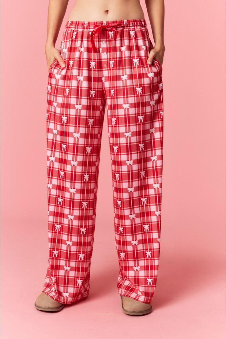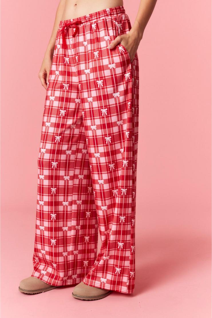 Emmie Coquette Pink Bow Plaid Printed Pajamas