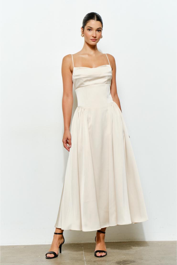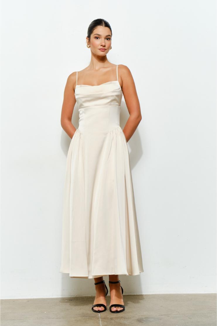 Slip into effortless sophistication with the Jessie Satin A-Line Midi Dress. This striking black design features luxurious satin fabric that catches the light with every move, while the flattering A-line silhouette skims your curves and elongates your frame. The midi length strikes the perfect balance between bold and refined, making it ideal for evening events, date nights, or whenever you want to command attention. Pair it with heels and statement jewelry to unleash your most confident self.
