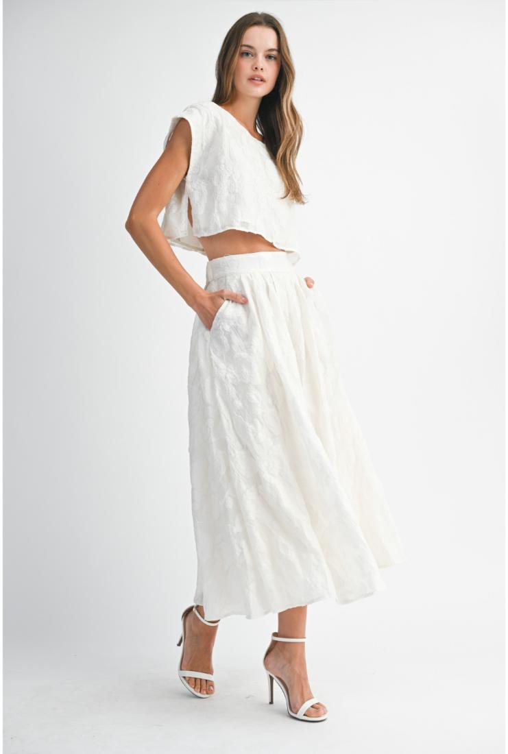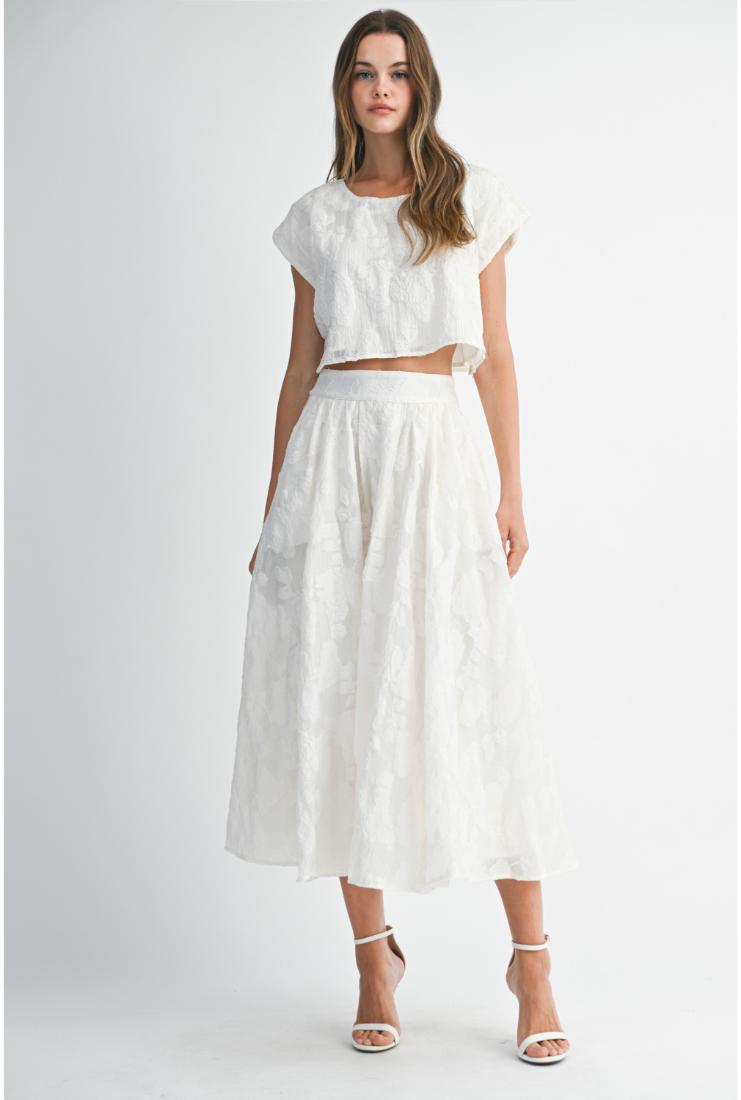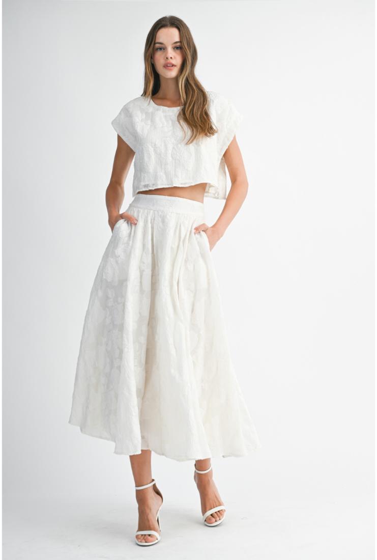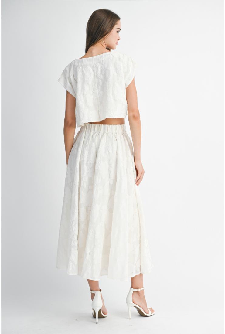 Lola Florals Textured Midi Skirt and Crop Top Set