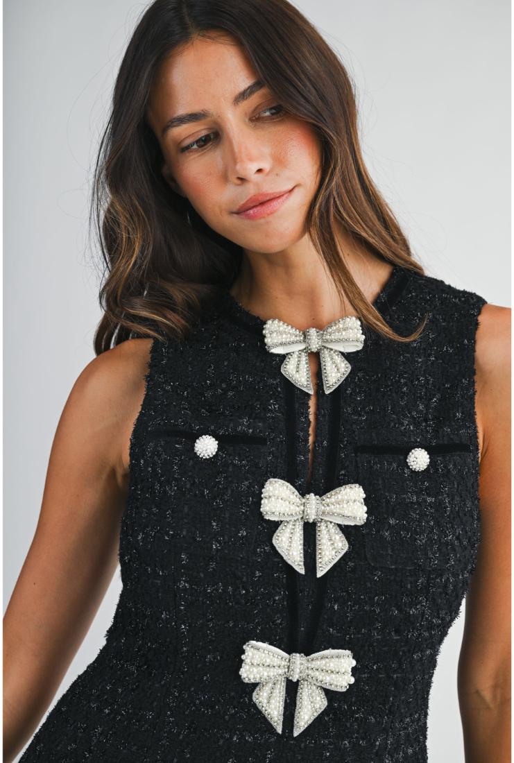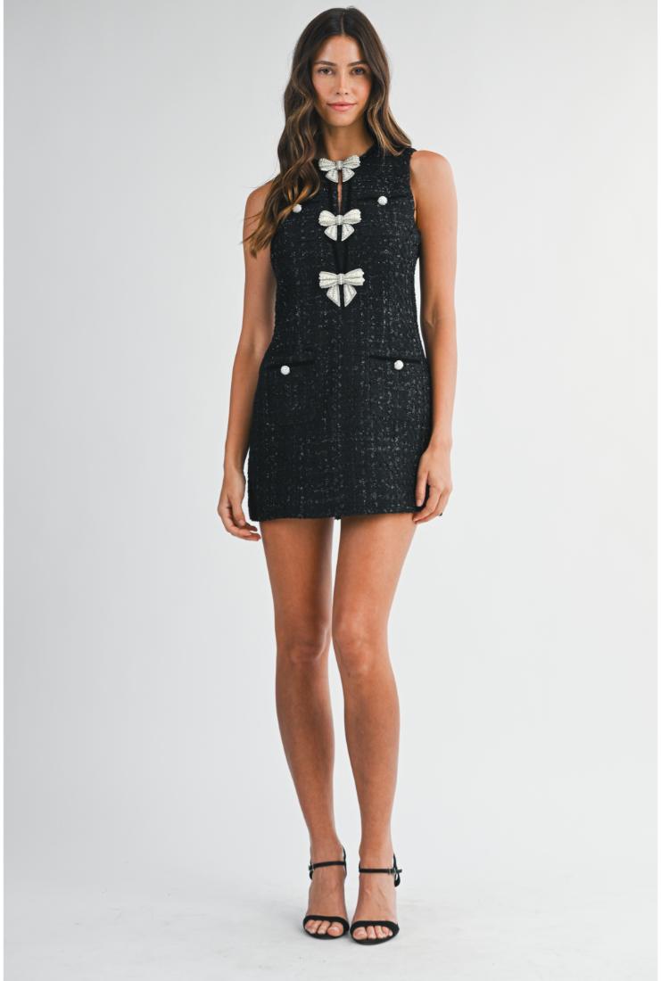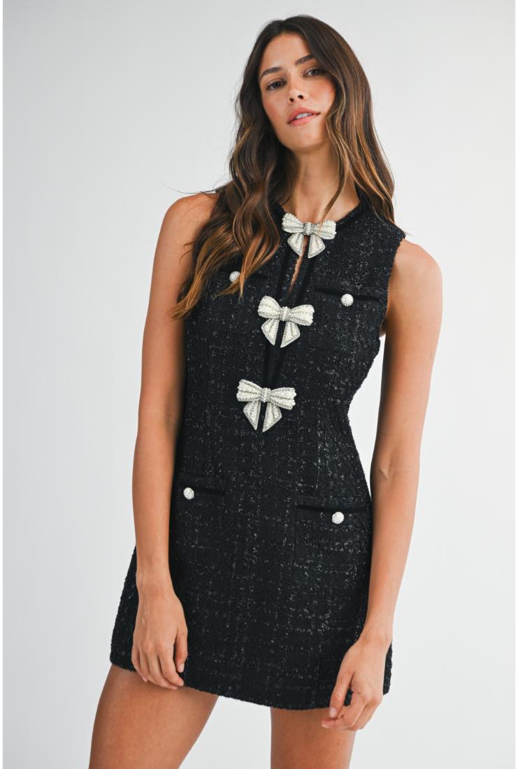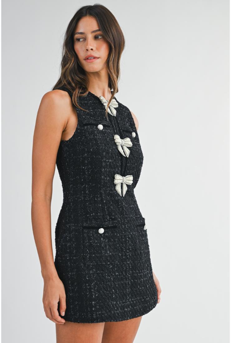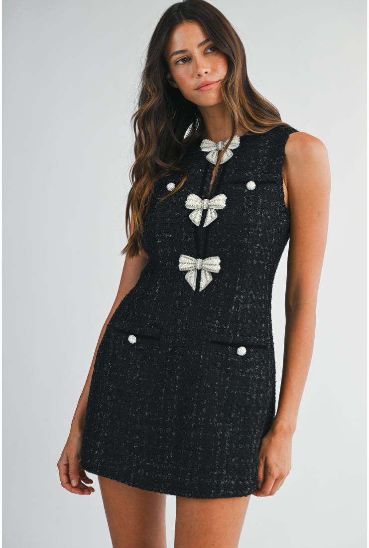 Peyton Pearl Bows Mini Tweed Dress