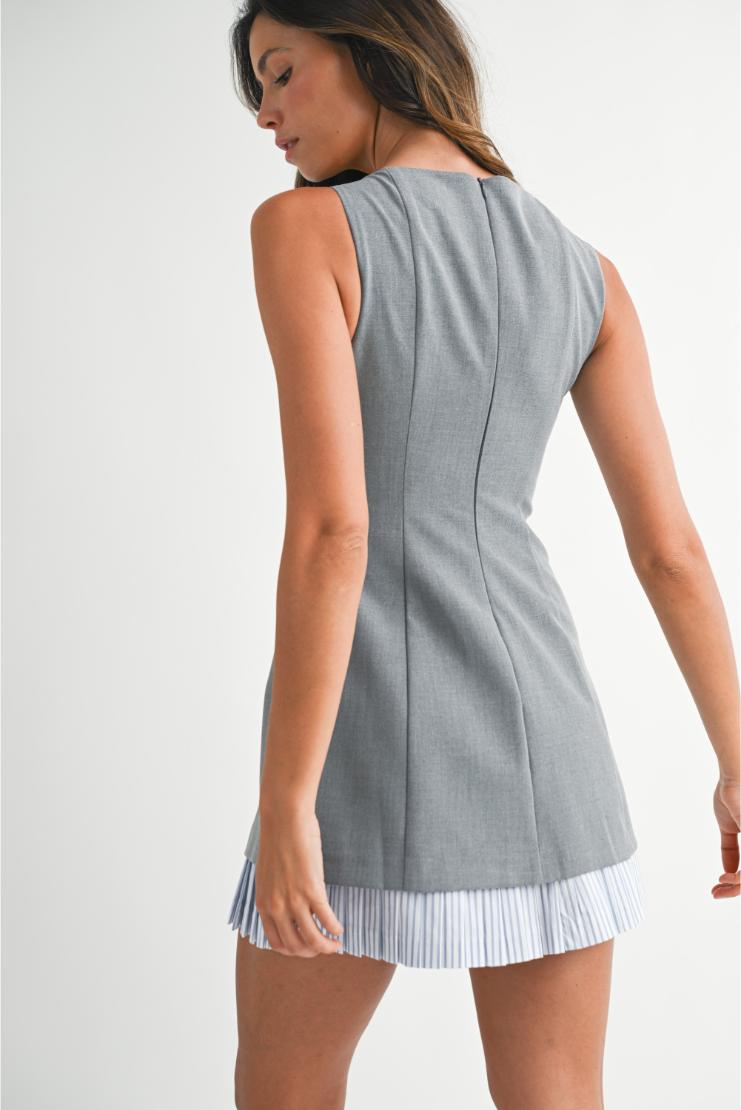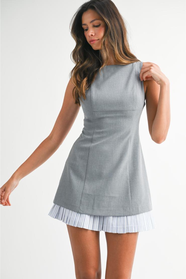 Robbie Sleeveless Contrast Stripe Pleated Hem Mini Dress